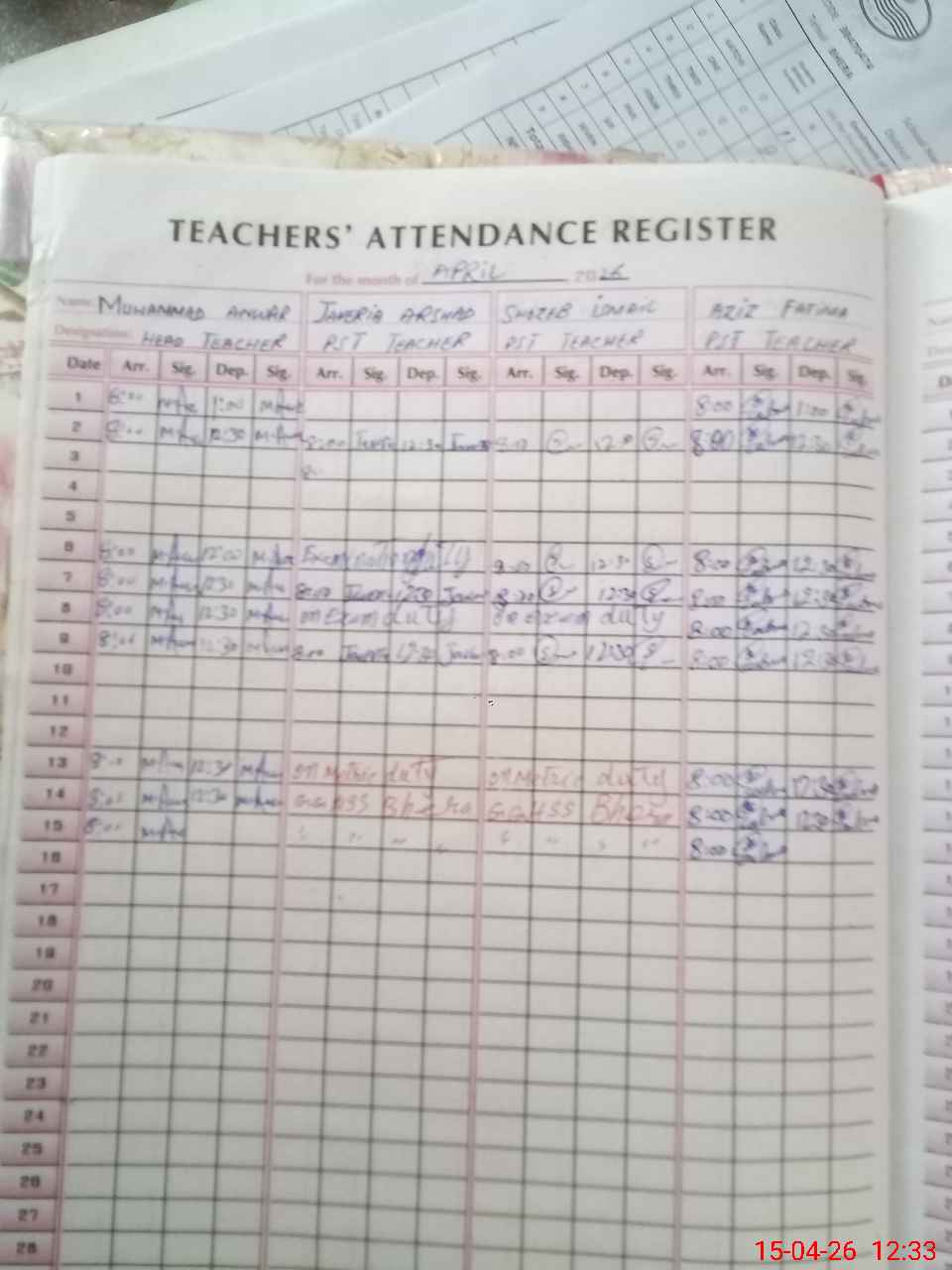 | 38**** | Ja**** Ar**** | PST Science/Maths | Regular | 0 | 0 | 0 | 0 | 0 | 0 | 0 | 0 | 0 | Exam Duty |
