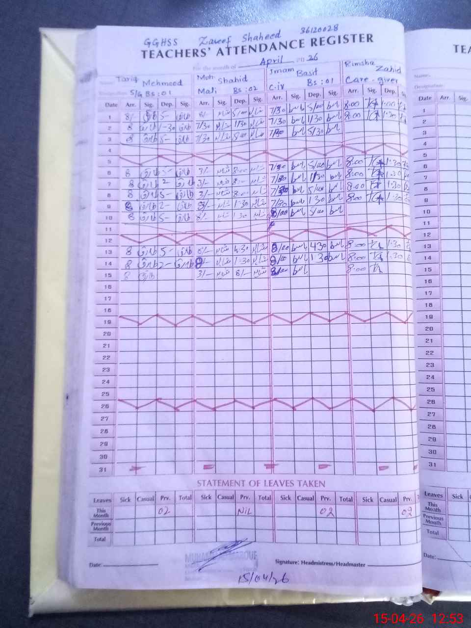 | EMIS Code: 36120028 | Name of School: GGHSS ZARIF SHAHEED SHAUJABAD | |||