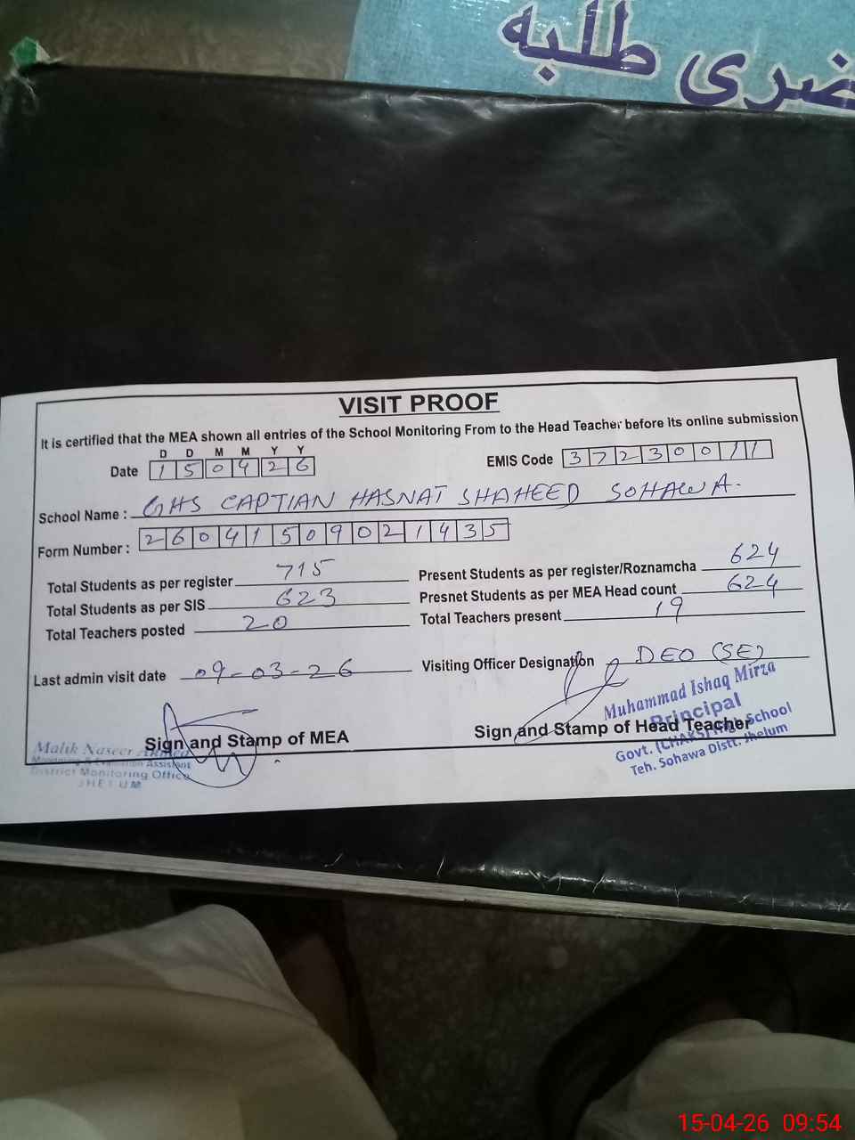 | EMIS Code: 37230011 | Name of School: GHS CAPTAIN HASNAT SHAHEED SOHAWA | |||