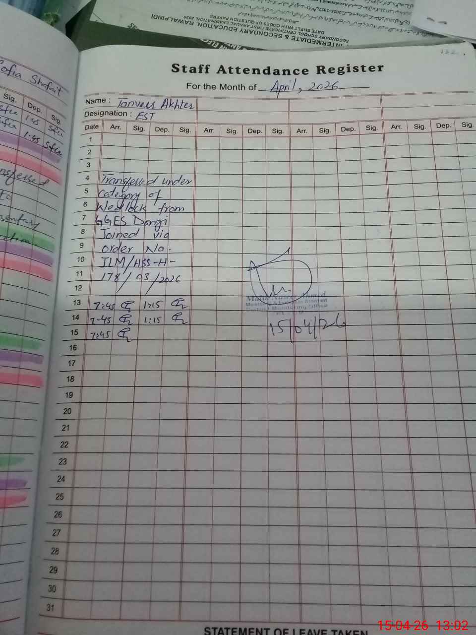 | 37**** | An**** Sh**** | EST Science | Regular | 0 | 0 | 0 | 0 | 0 | 0 | 0 | 0 | 0 | Exam Duty |