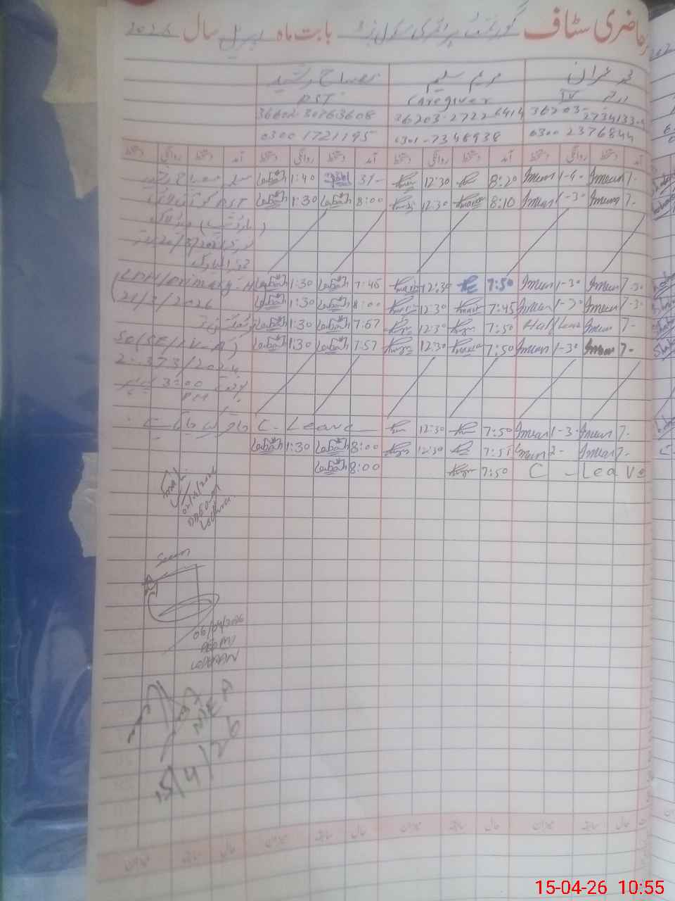 | Leave | Duty | Absent | Maternity | Medical | Ex- Pak |
