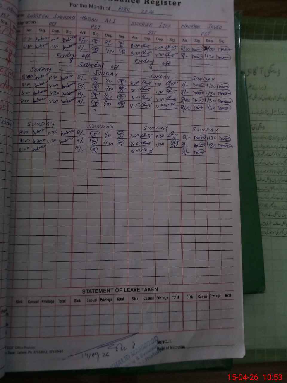 | 37**** | Im**** Za**** | PST Arts | Regular | 0 | 0 | 0 | 0 | 0 | 0 | 0 | 0 | 0 | Exam Duty |