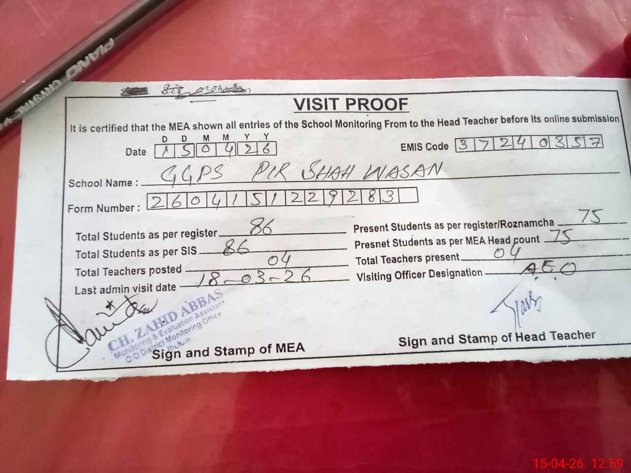 | EMIS Code: 37240357 | Name of School: GGPS PIR SHAH WASAN | |||