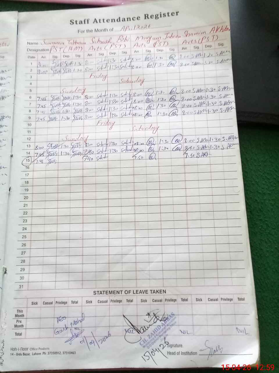 | Name: Su**** Ta**** Designation: (School Headmaster's/Headmistress's) Headmistress Phone/Cell Number: 03**** |