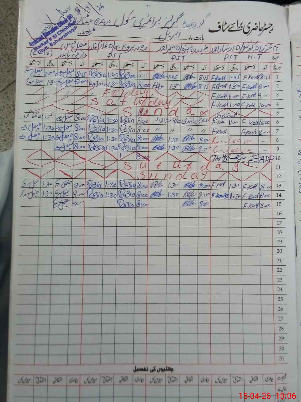 | District: BAHAWALNAGAR | Tehsil: CHISHTIAN | Markaz: CTN -XII-FEMALE | Level: Primary | |