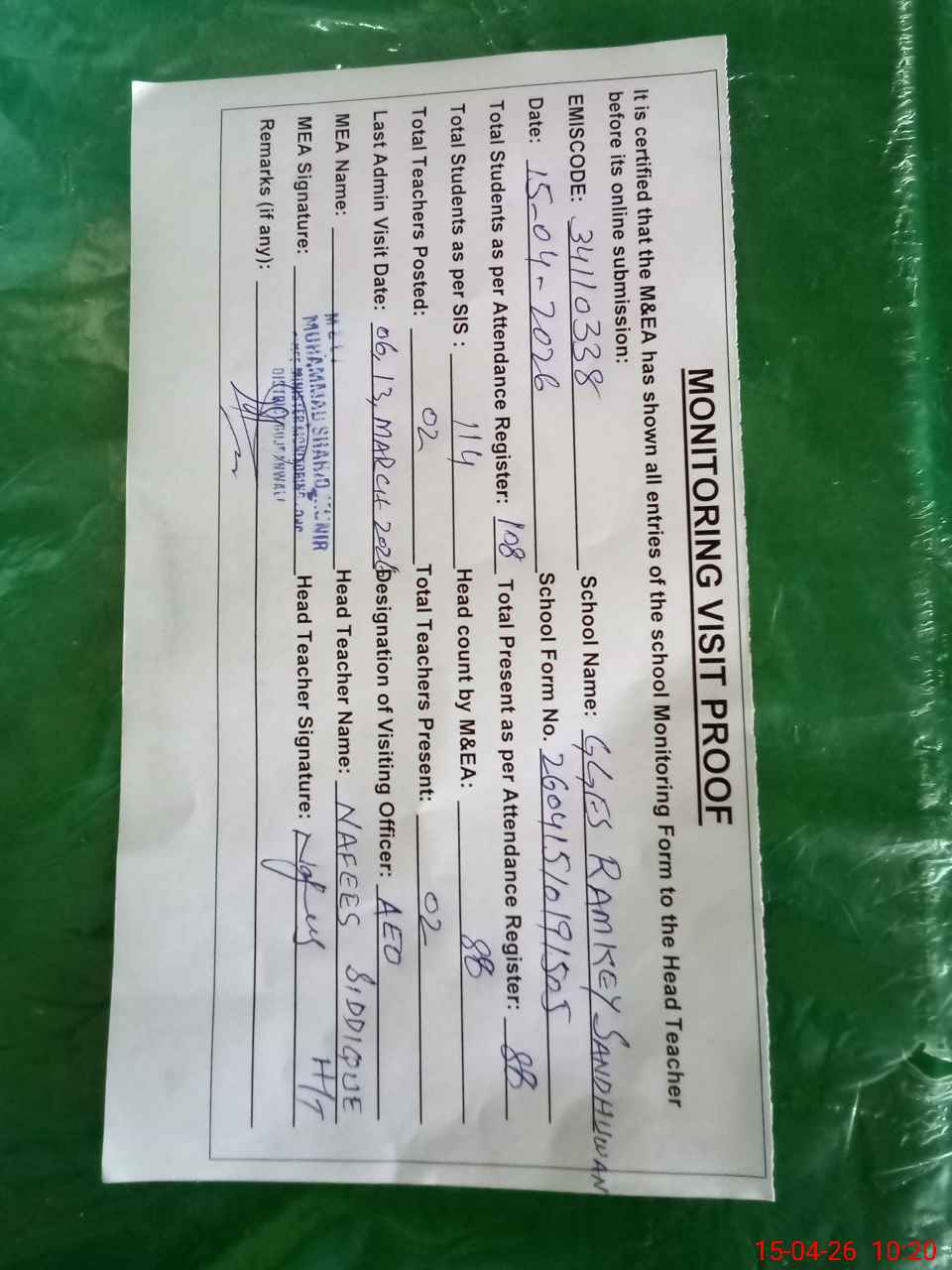 | EMIS Code: 34110338 | Name of School: GGES RAMKEY SANDHUWAN | |||