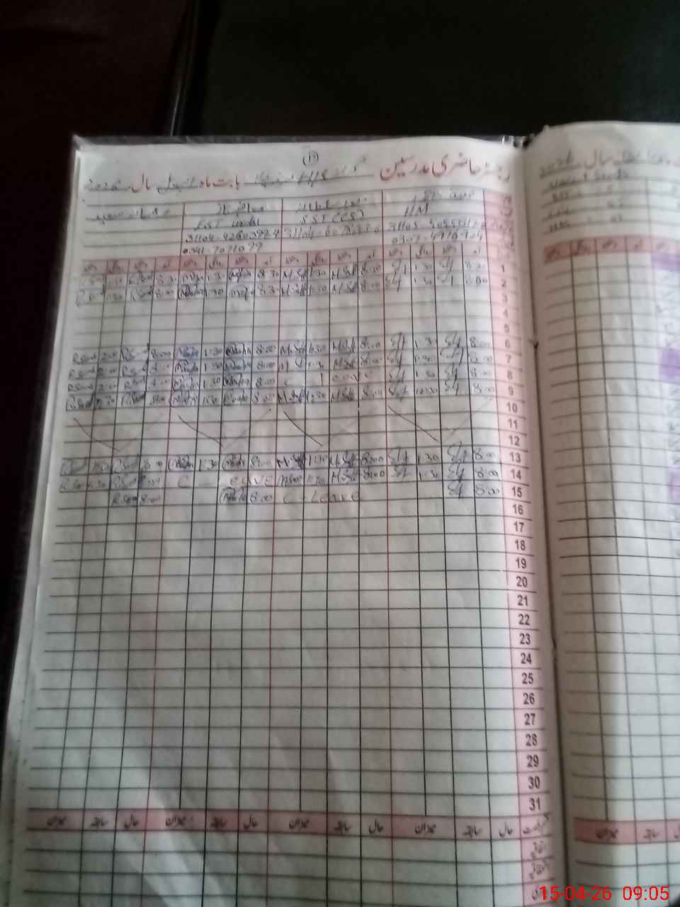 | 31**** | Ah**** Ya**** | CIV | 2 | 0 | 0 | 0 | 0 | 0 | 0 | 0 | 2 | Absent (Un-Authorized) | |