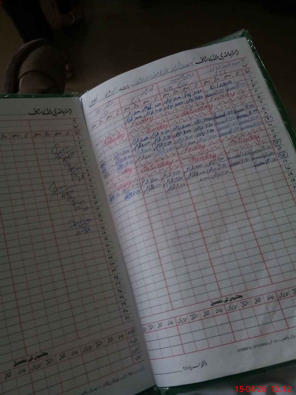 | CNIC | Full Name | Designation | R/C | Absence During Last Calender Month |