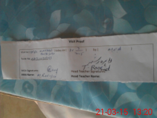 | Attendance Register | Head Teacher | MEA with School | Visit Proof |