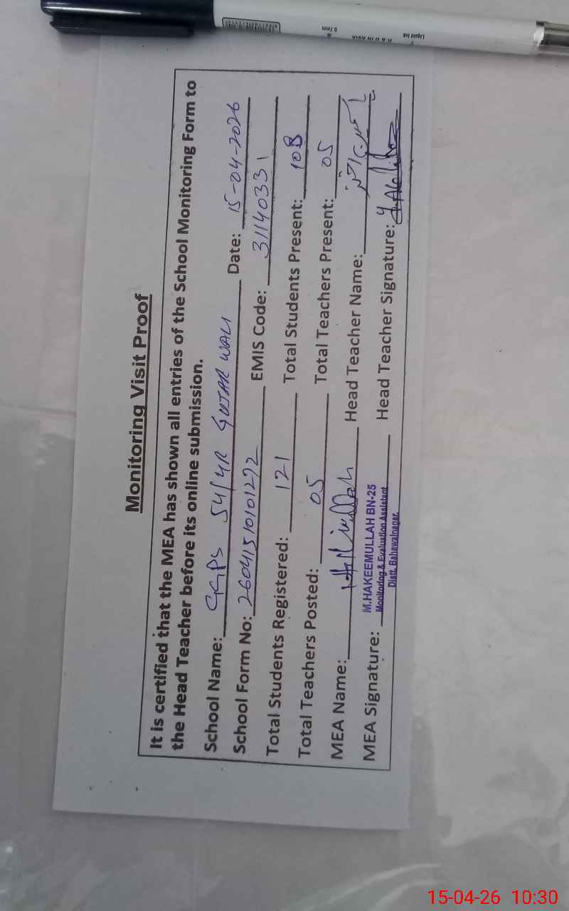 | EMIS Code: 31140331 | Name of School: GGPS 54/4R GUJAR WALI | |||