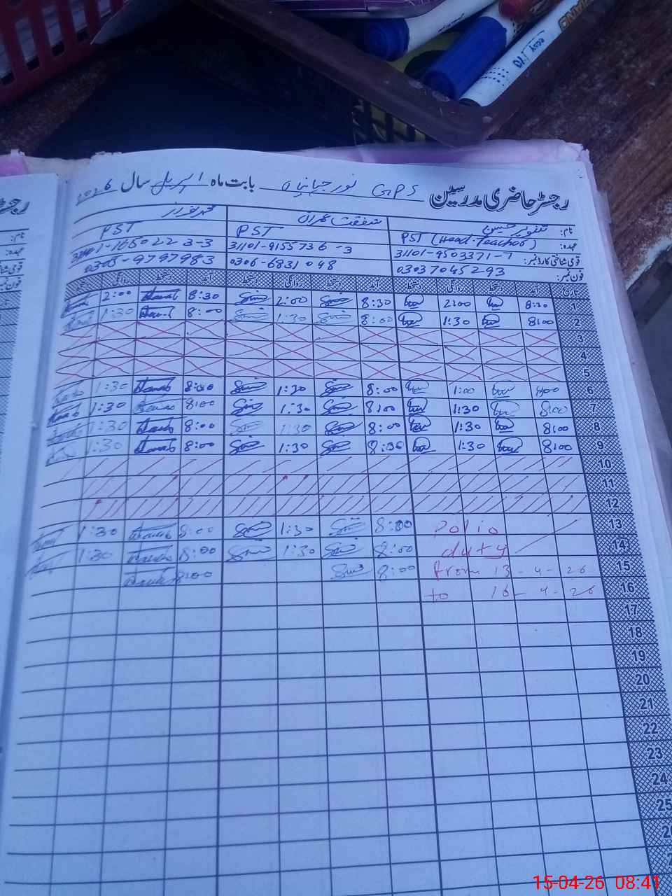 | Name: Ta**** Hu**** Designation: (School Headmaster's/Headmistress's) PST Phone/Cell Number: 03**** |