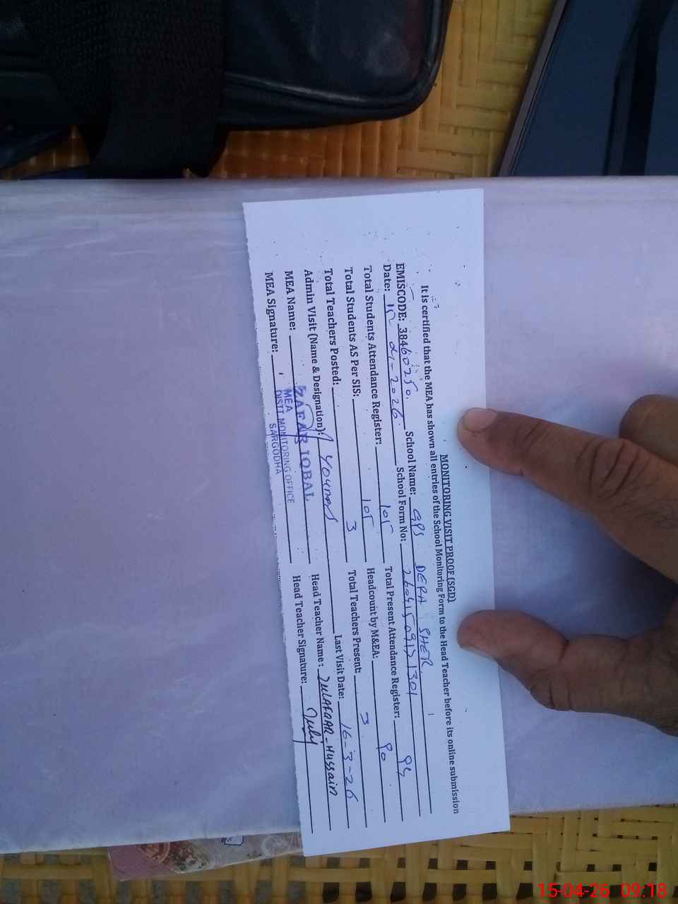 | EMIS Code: 38460250 | Name of School: GPS DERA MIAN SHER | |||