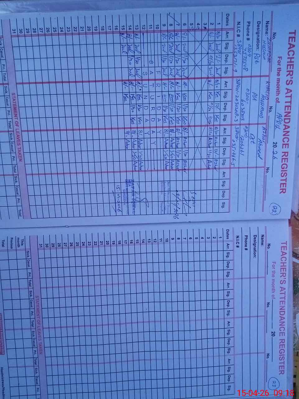 | Name: ZU**** HU**** Designation: (School Headmaster's/Headmistress's) PST Phone/Cell Number: 03**** |