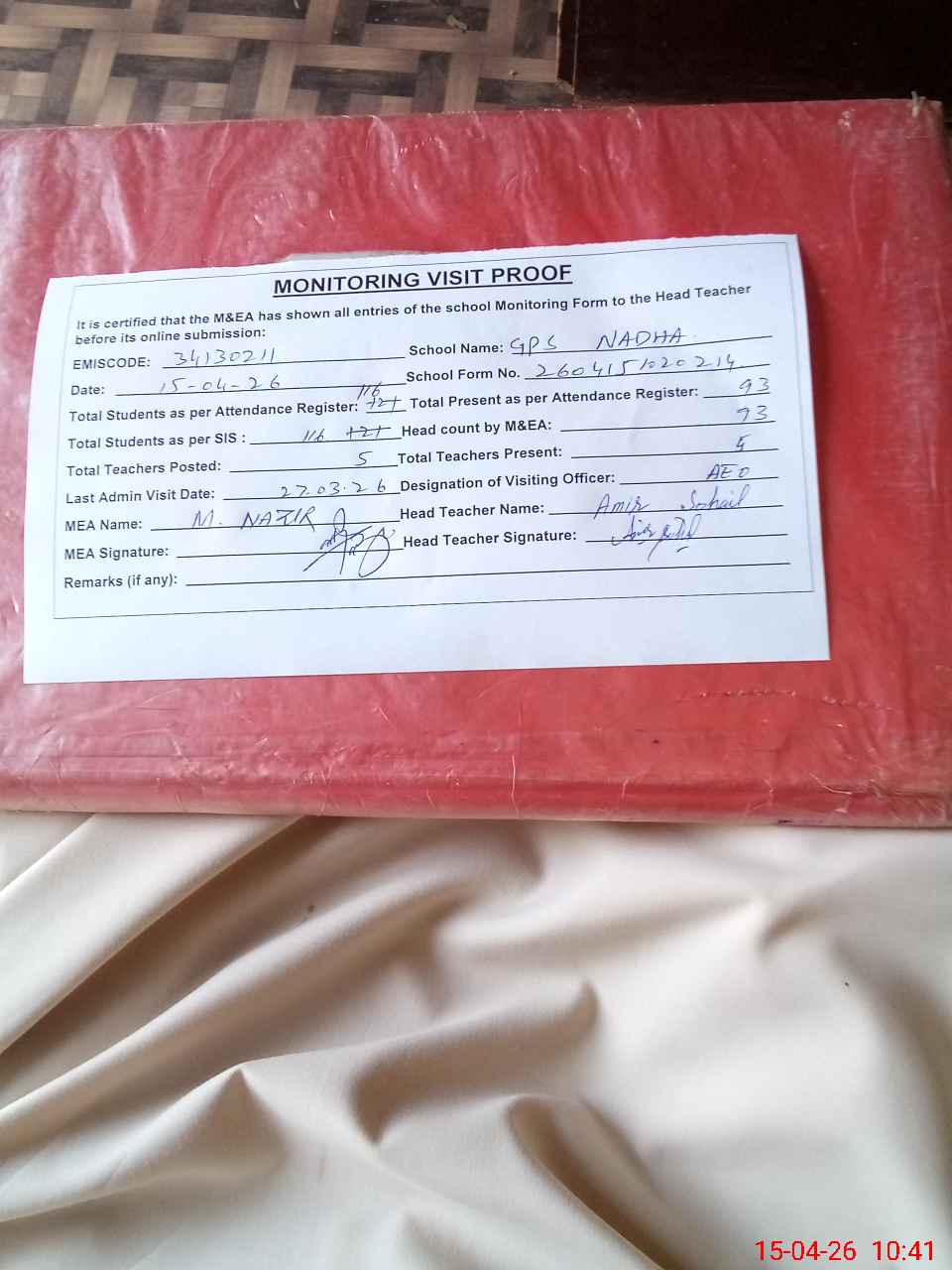 | EMIS Code: 34130211 | Name of School: GPS NADHA | |||