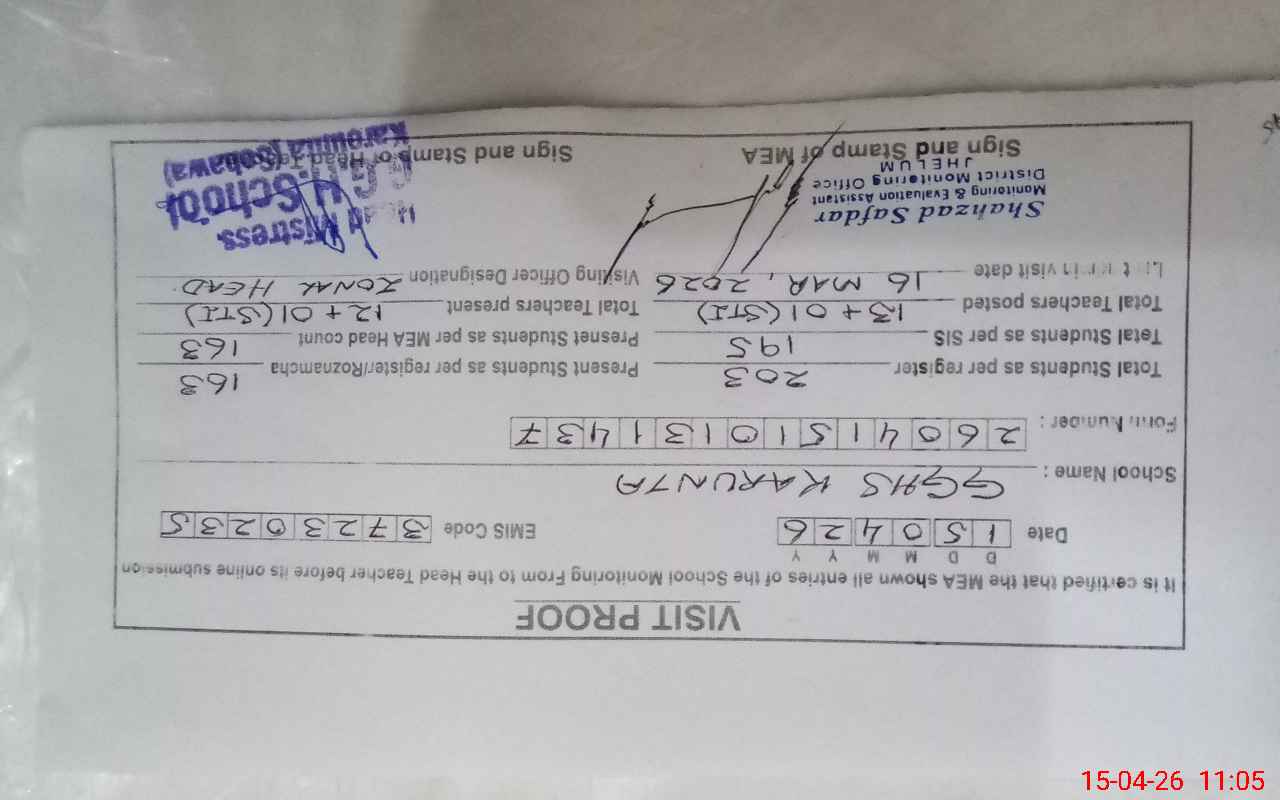 | EMIS Code: 37230235 | Name of School: GGHS KARUNTA | |||