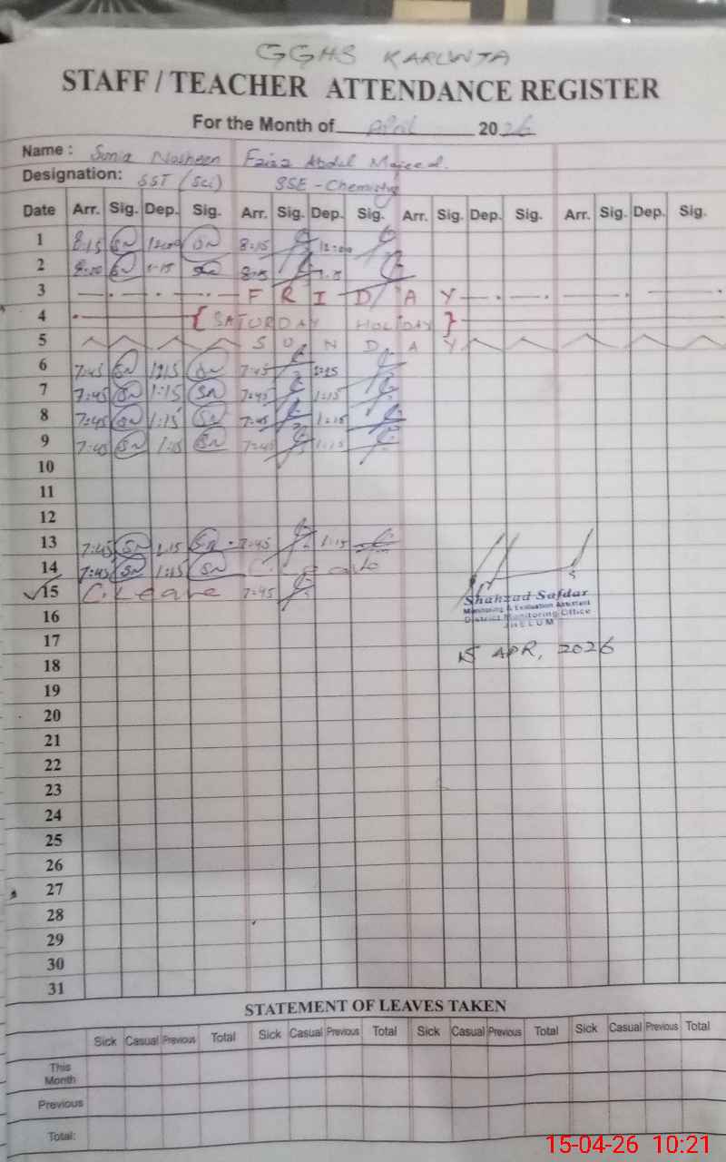| Name: GH**** RI**** Designation: (School Headmaster's/Headmistress's) S.S.T.(Arts) Phone/Cell Number: 03**** |