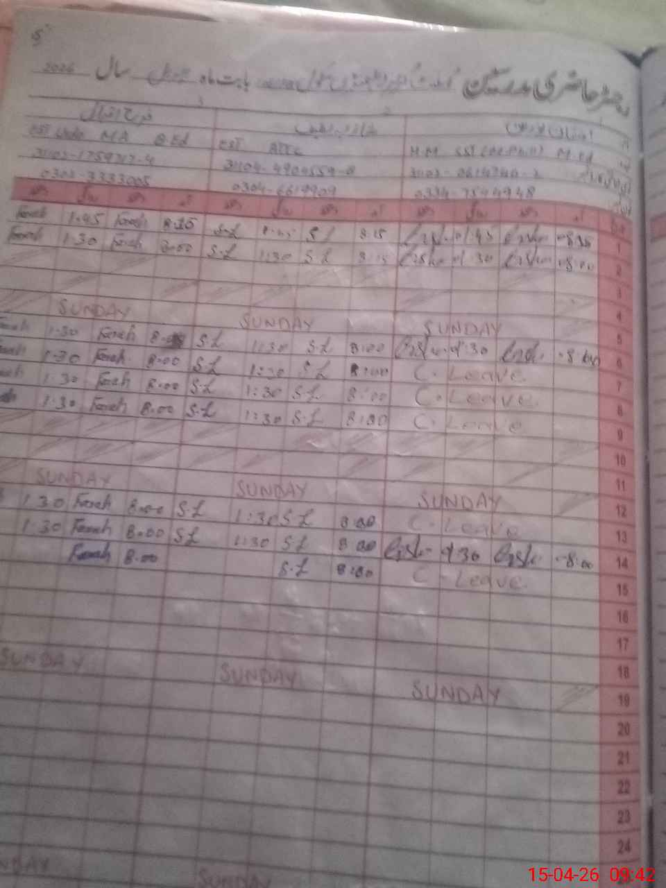 | 31**** | Sa**** Fa**** | PST Science/Maths | Regular | 0 | 0 | 0 | 0 | 0 | 0 | 0 | 0 | 0 | Absent (Un-Authorized) |