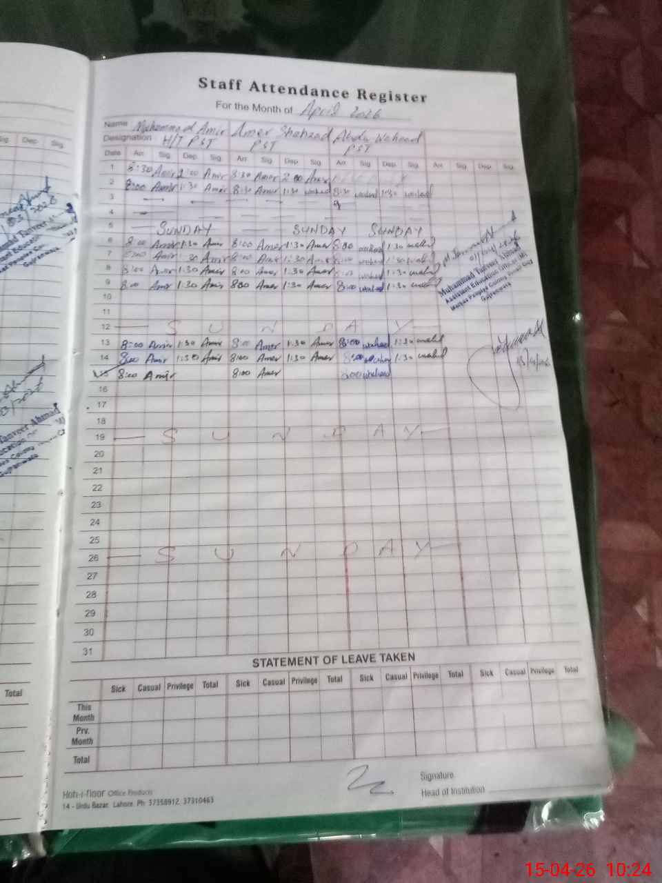 | Name: MAm**** Designation: (School Headmaster's/Headmistress's) PST Phone/Cell Number: 03**** |