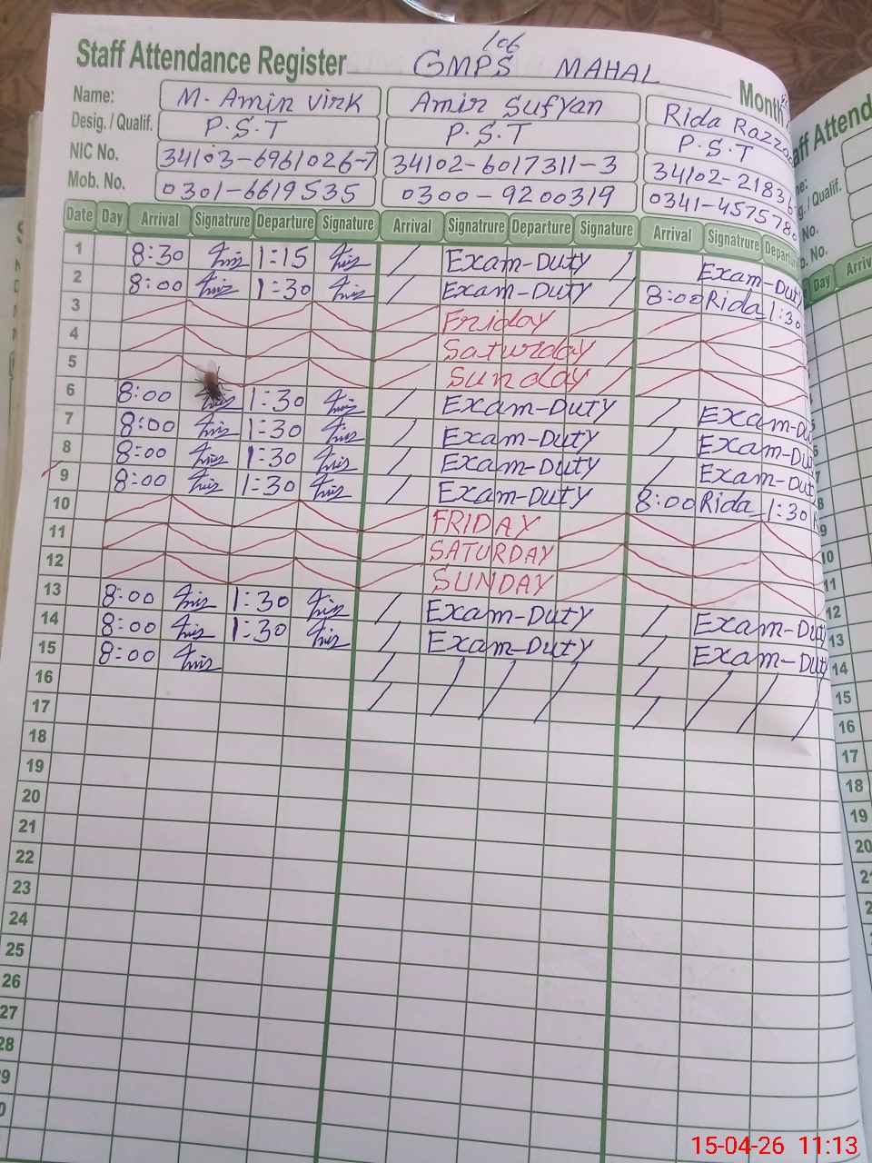 | 34**** | Am**** Su**** | PST Science/Maths | Regular | 0 | 0 | 0 | 0 | 0 | 0 | 0 | 0 | 0 | Exam Duty |