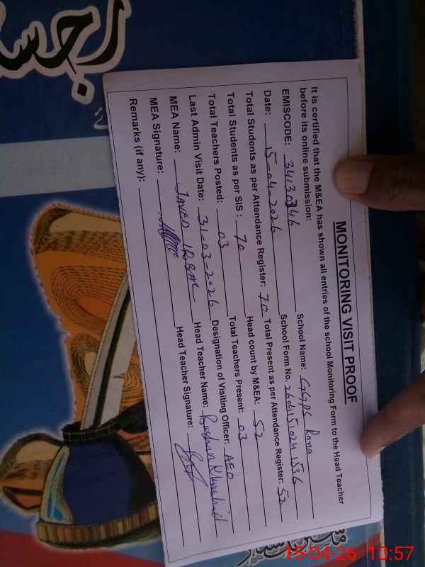 | EMIS Code: 34130346 | Name of School: GGPS RANA | |||