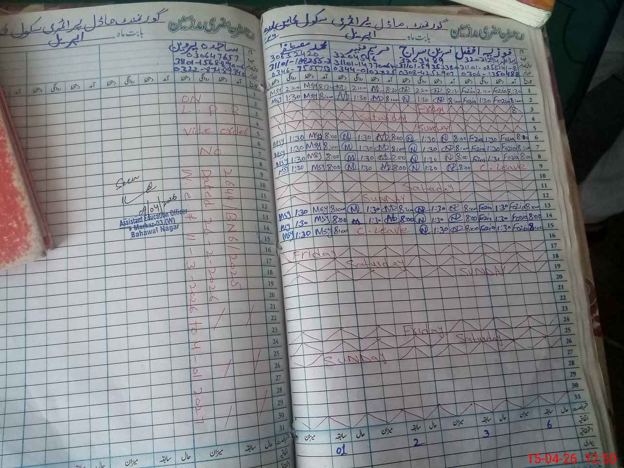 | Remarks (Use Separate Page if Required): NSB RECORD REGISTER NOT SHOWN TO MEA AND STUDENTS ATTENDANCE REGISTER ARE NOT UPDATED and no approved leave of tea her maryam munir on sis or hrm | |||||