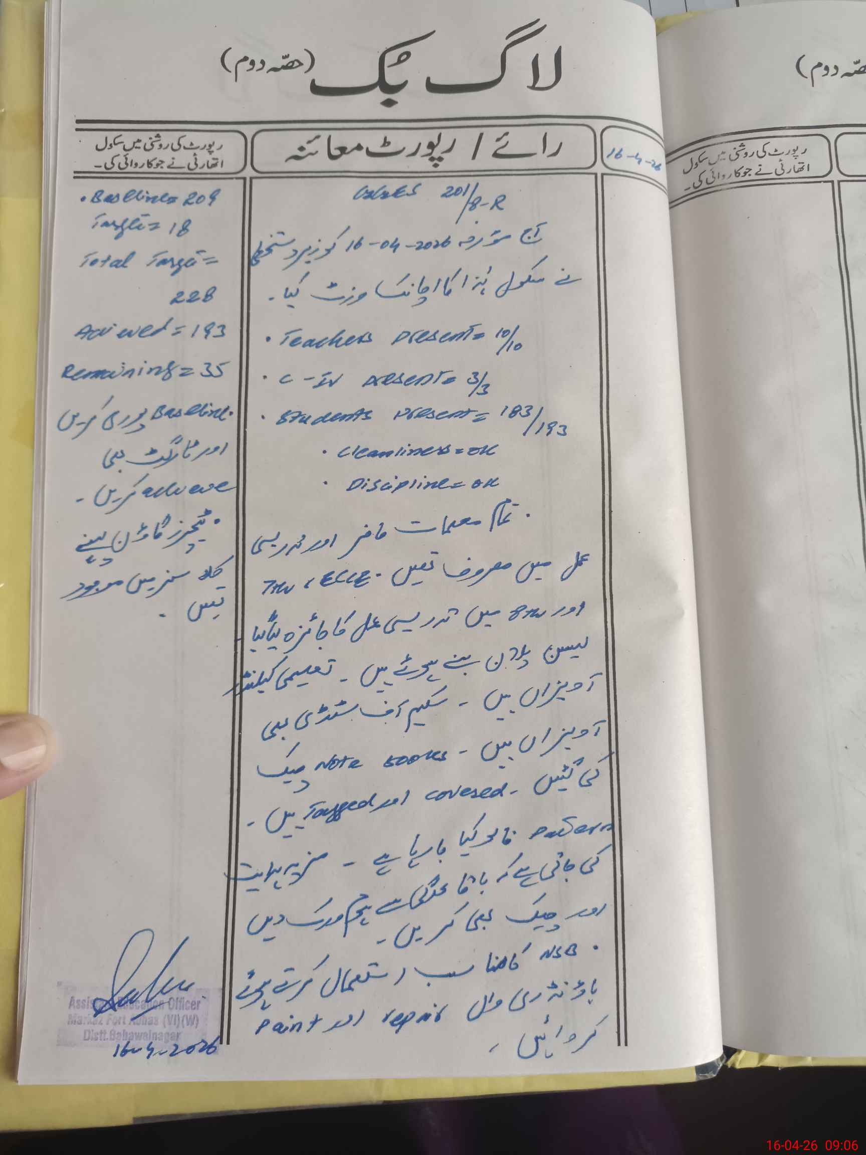 | Certified that this School was Inspected by the Undersigned MEA/DMO Today and the Information Stated Above is as Per Record. | |||||