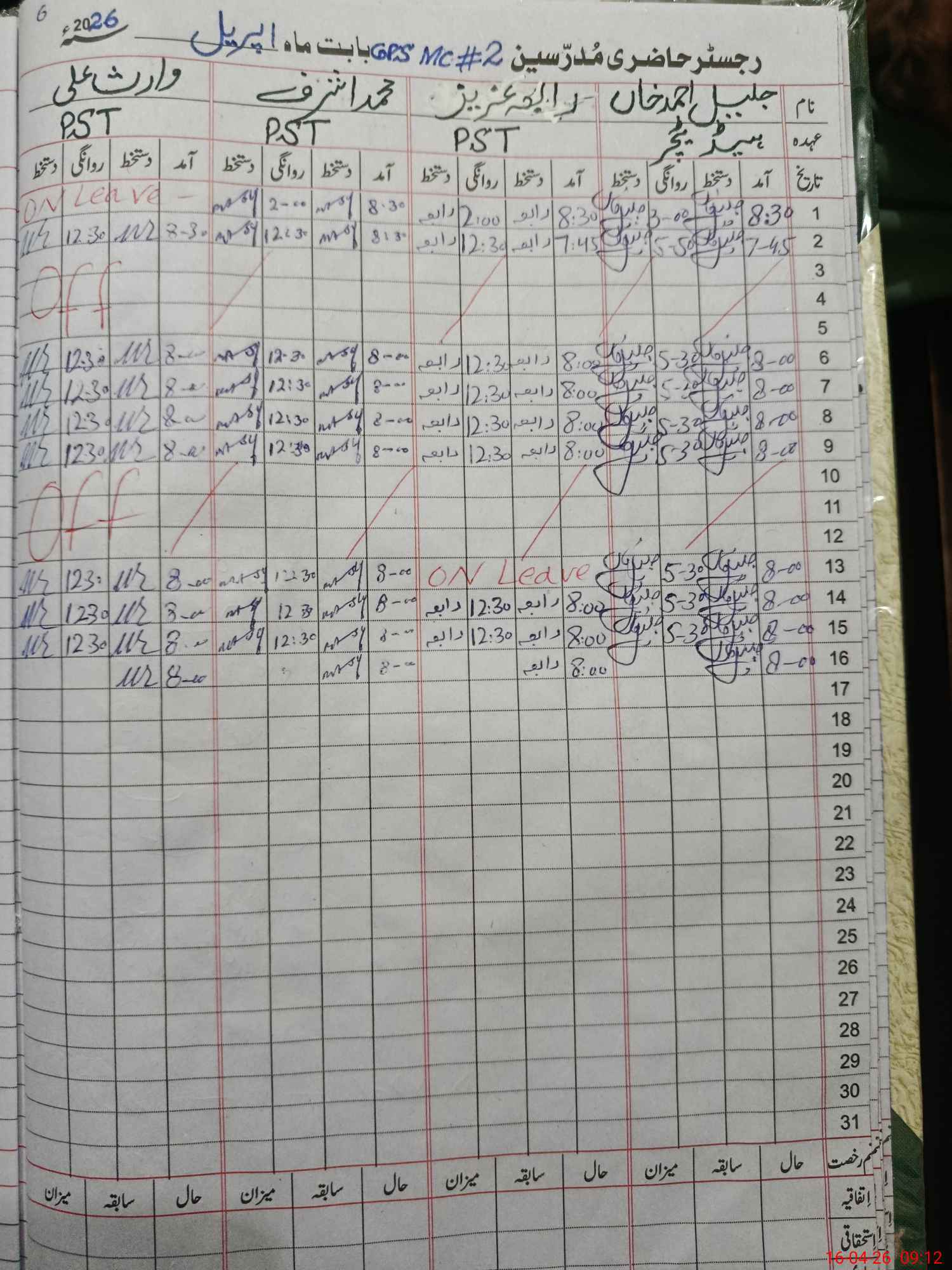 | CNIC | Full Name | Designation | R/C | Absence During Last Calender Month |