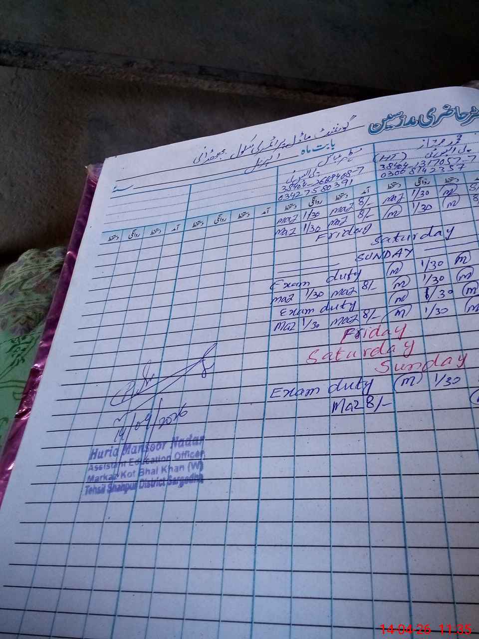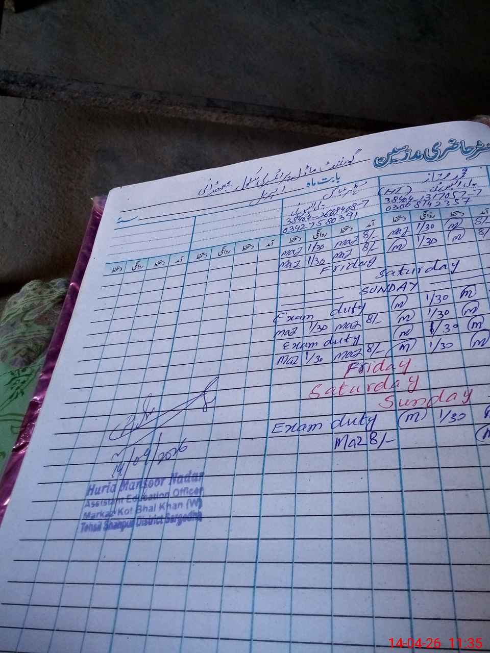 | Name: Mu**** Mu**** Designation: (School Headmaster's/Headmistress's) PST (SCI-MATH) Phone/Cell Number: 03**** |