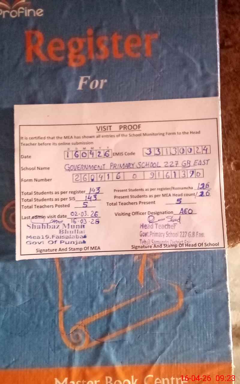 | EMIS Code: 33130024 | Name of School: GPS CHAK 227 GB EAST SAMUNDRI | |||