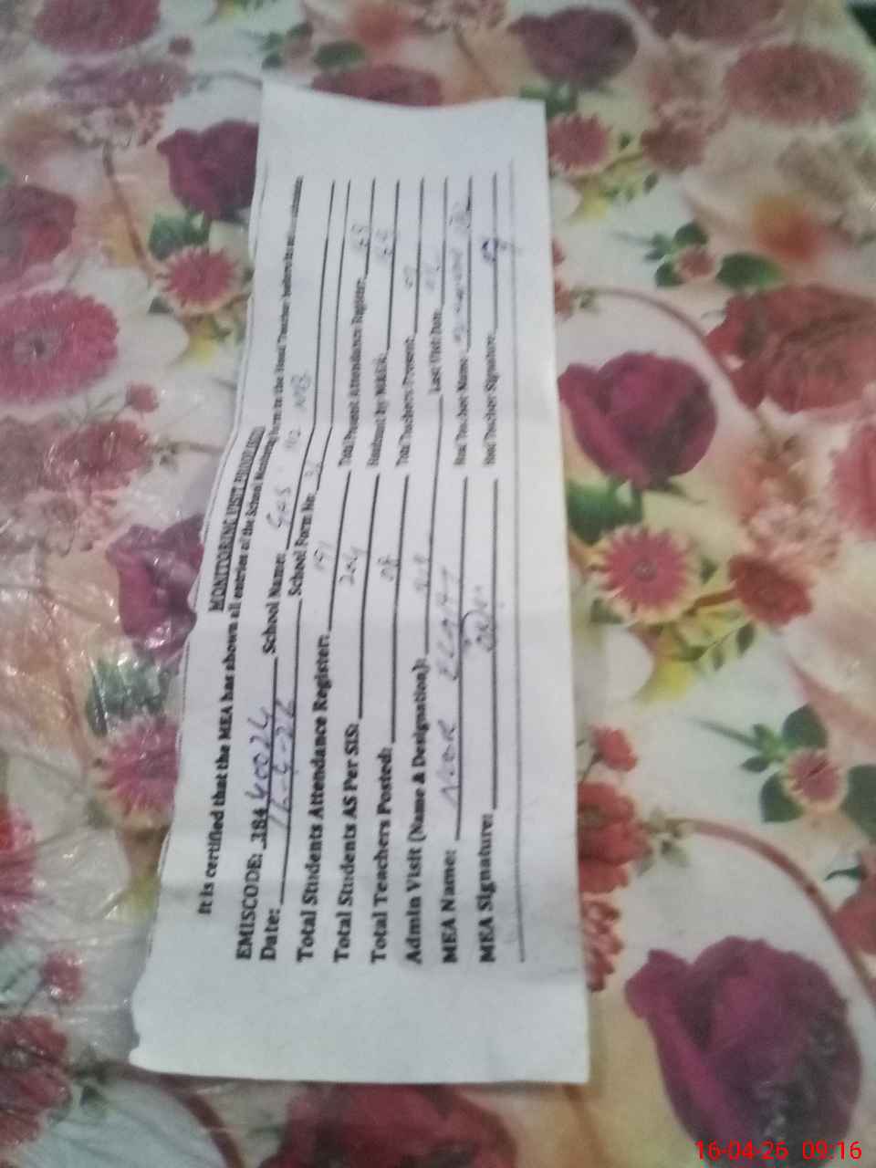 | Name: MU**** IJ**** Designation: (School Headmaster's/Headmistress's) EST ART Phone/Cell Number: 03**** |