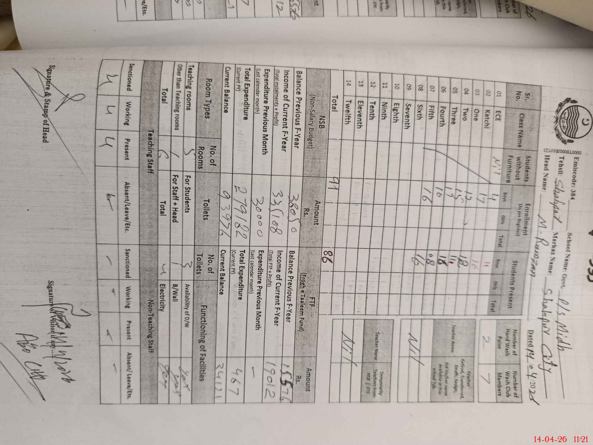 | Textbook Sets Received in the School | 25 | 16 | 15 | 17 | 8 | 13 | |||||