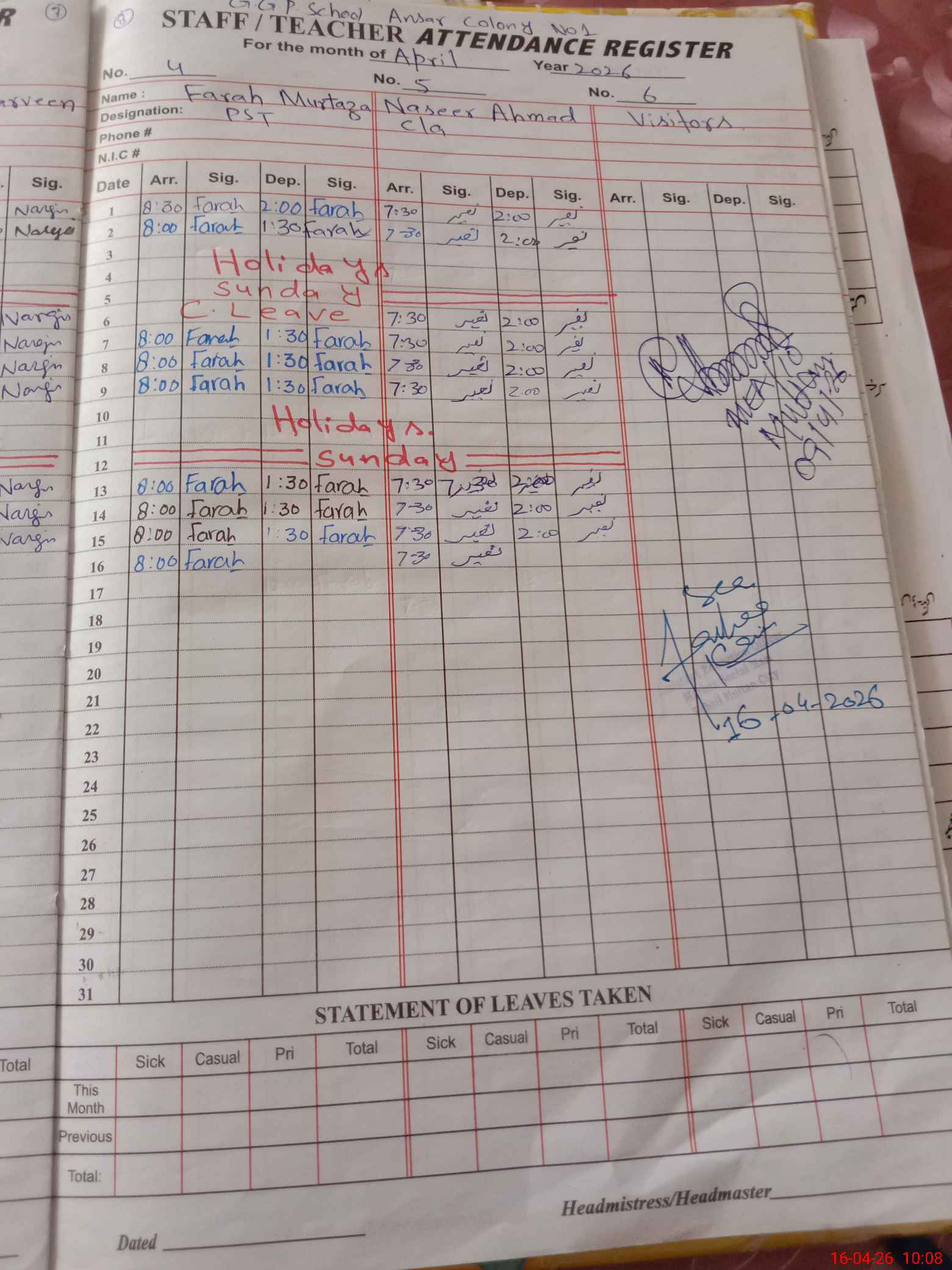 | Name: SA**** SH**** Designation: (School Headmaster's/Headmistress's) PST Phone/Cell Number: 03**** |