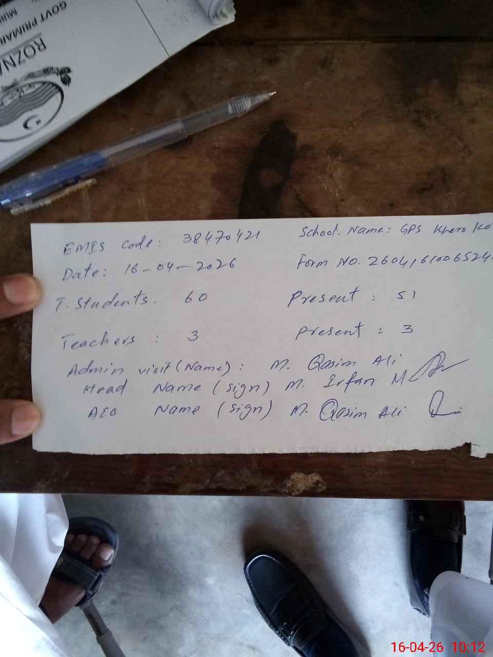 | EMIS Code: 38470421 | Name of School: GPS KHAIRO KOT | |||