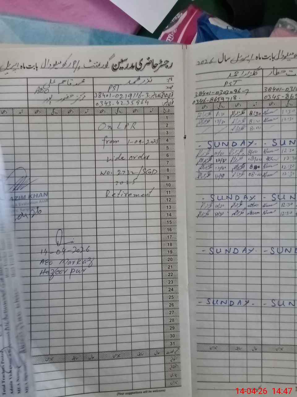 | Name: Mu**** Um**** Ha**** Designation: (School Headmaster's/Headmistress's) PST Phone/Cell Number: 03**** |