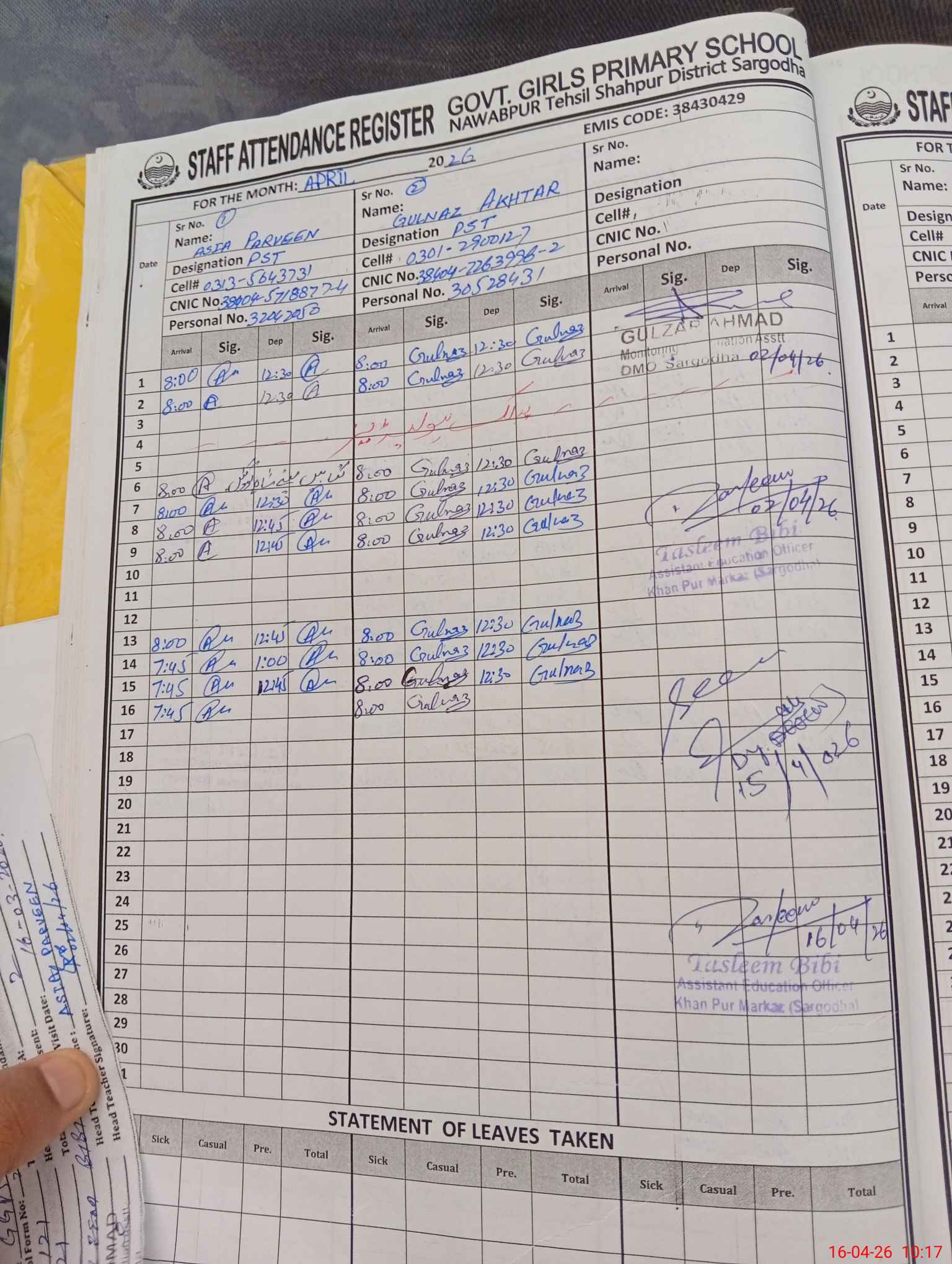 | Name: AS**** PA**** Designation: (School Headmaster's/Headmistress's) PST (Sc-Math) Phone/Cell Number: 03**** |