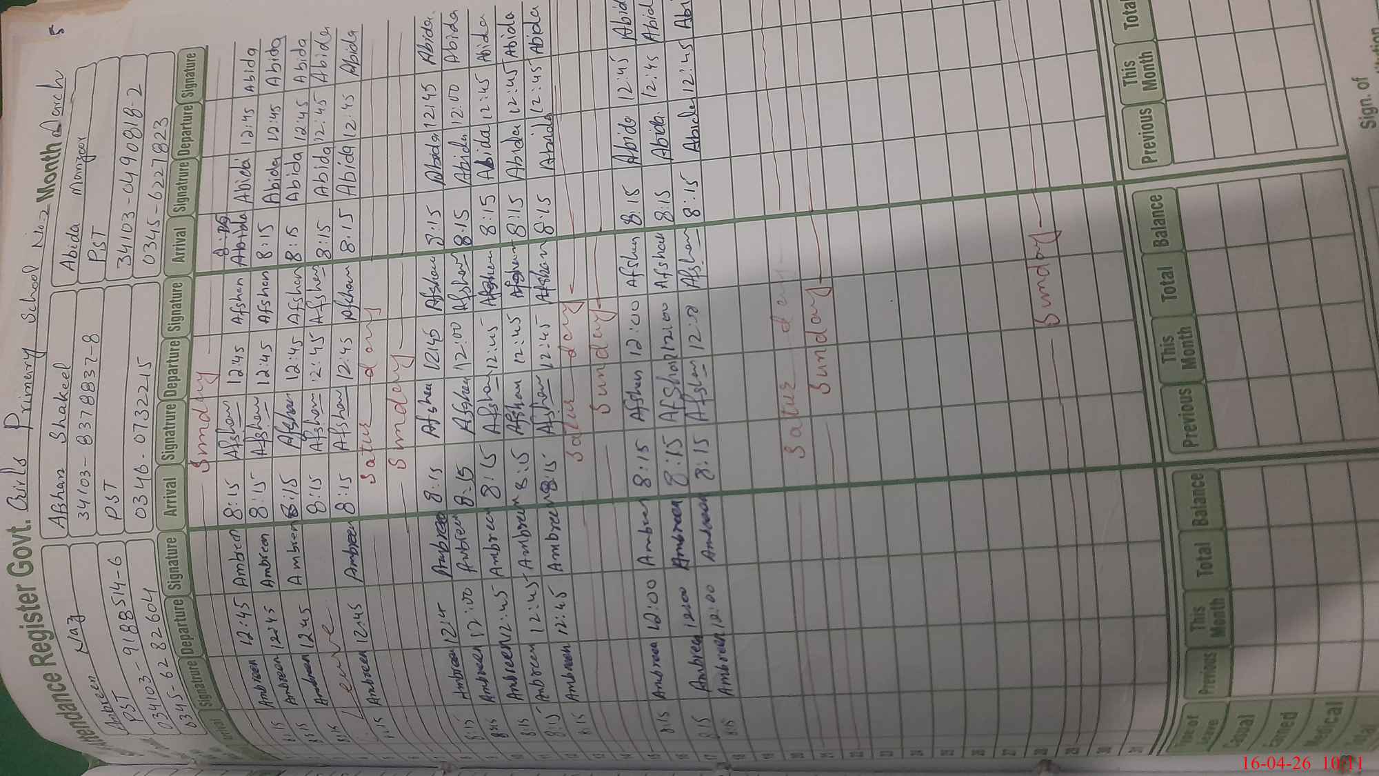 | Name: Iq**** Ra**** Designation: (School Headmaster's/Headmistress's) PST Phone/Cell Number: 03**** |