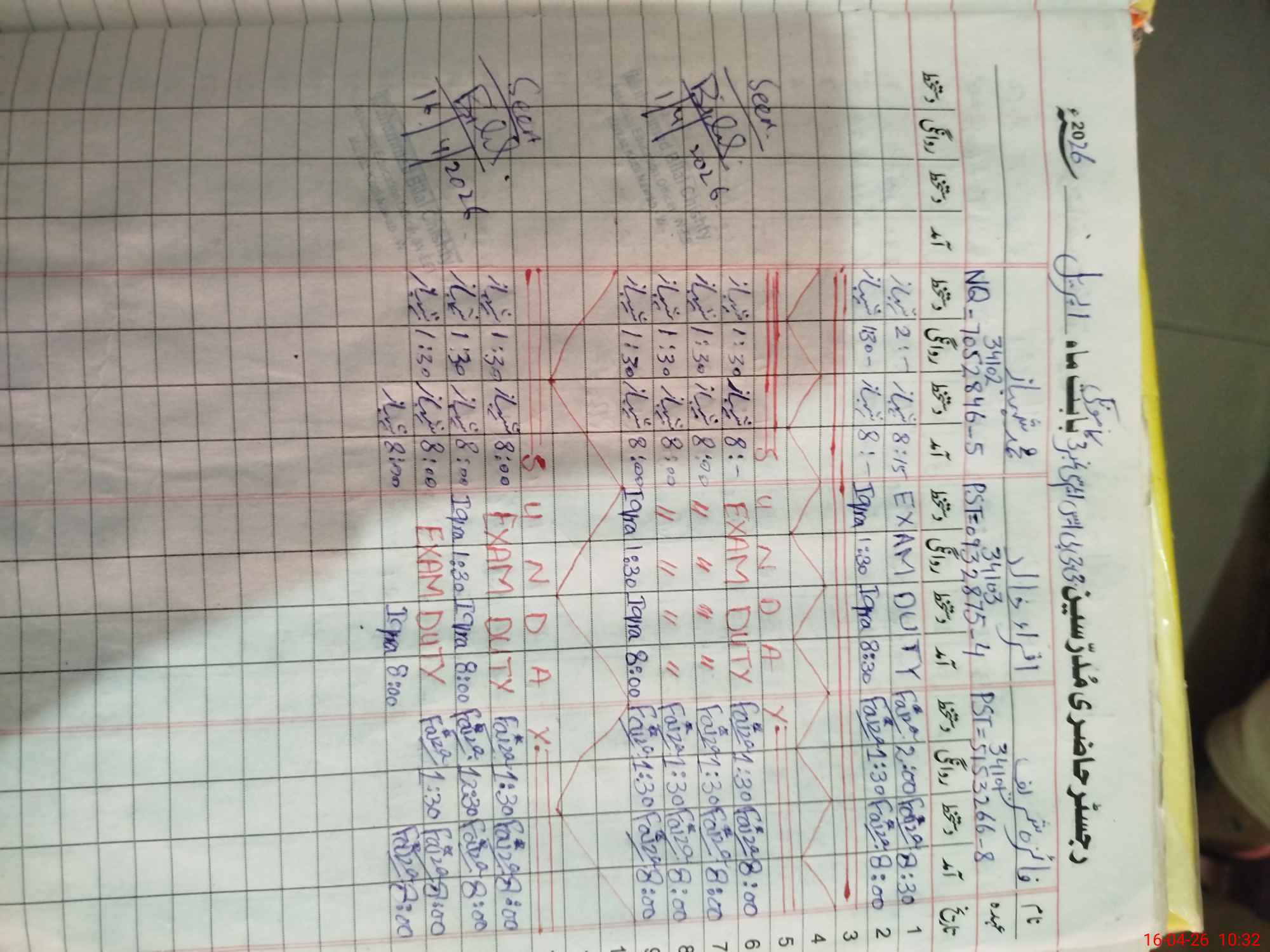 | CNIC | Full Name | Designation | R/C | Absence During Last Calender Month |
