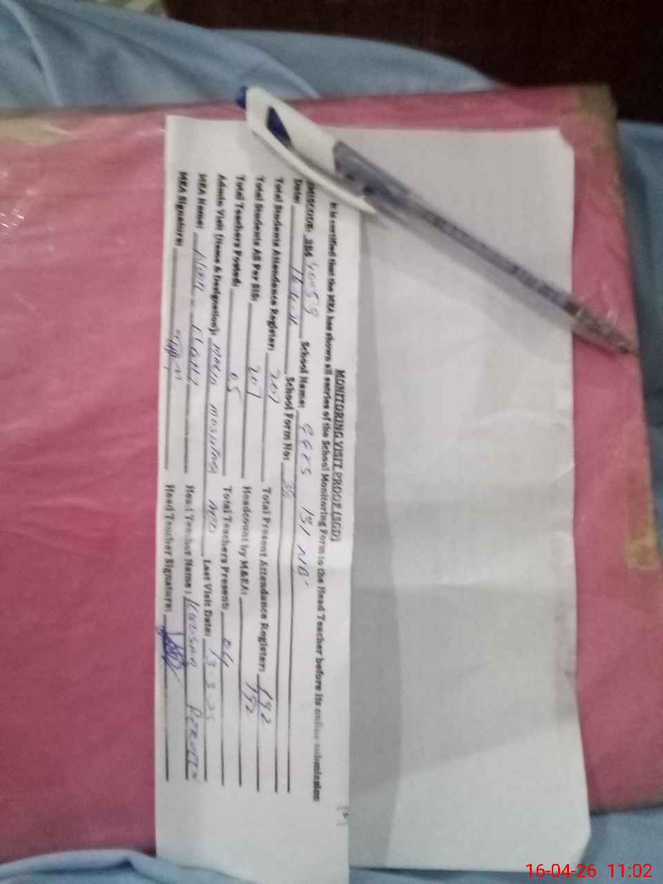 | Attendance Register | Head Teacher | MEA with School | Visit Proof |