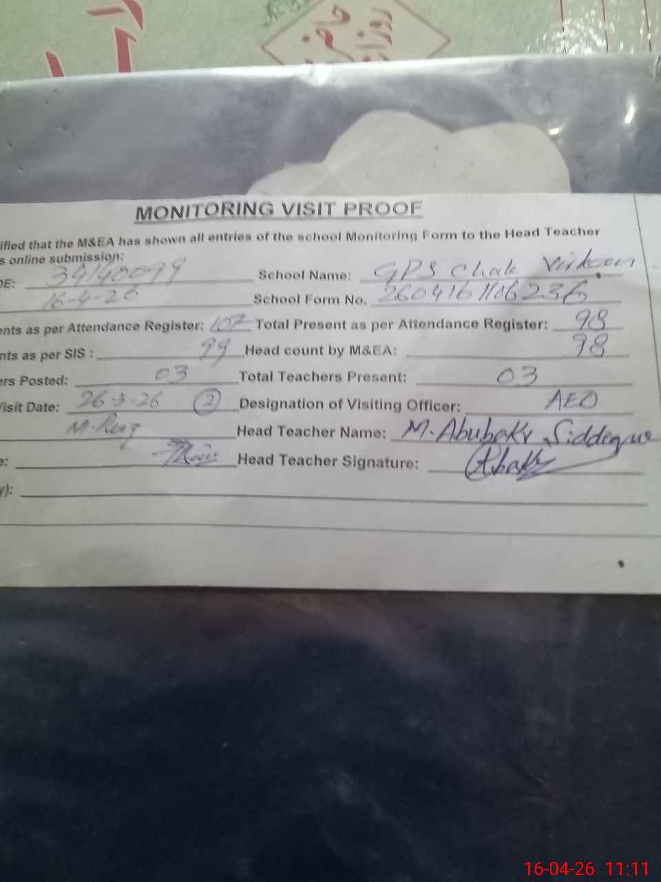 | EMIS Code: 34140099 | Name of School: GPS CHAK VIRKAN | |||