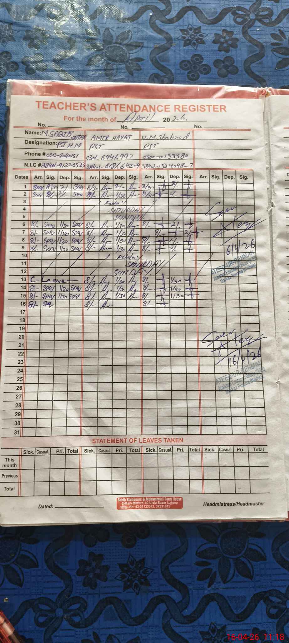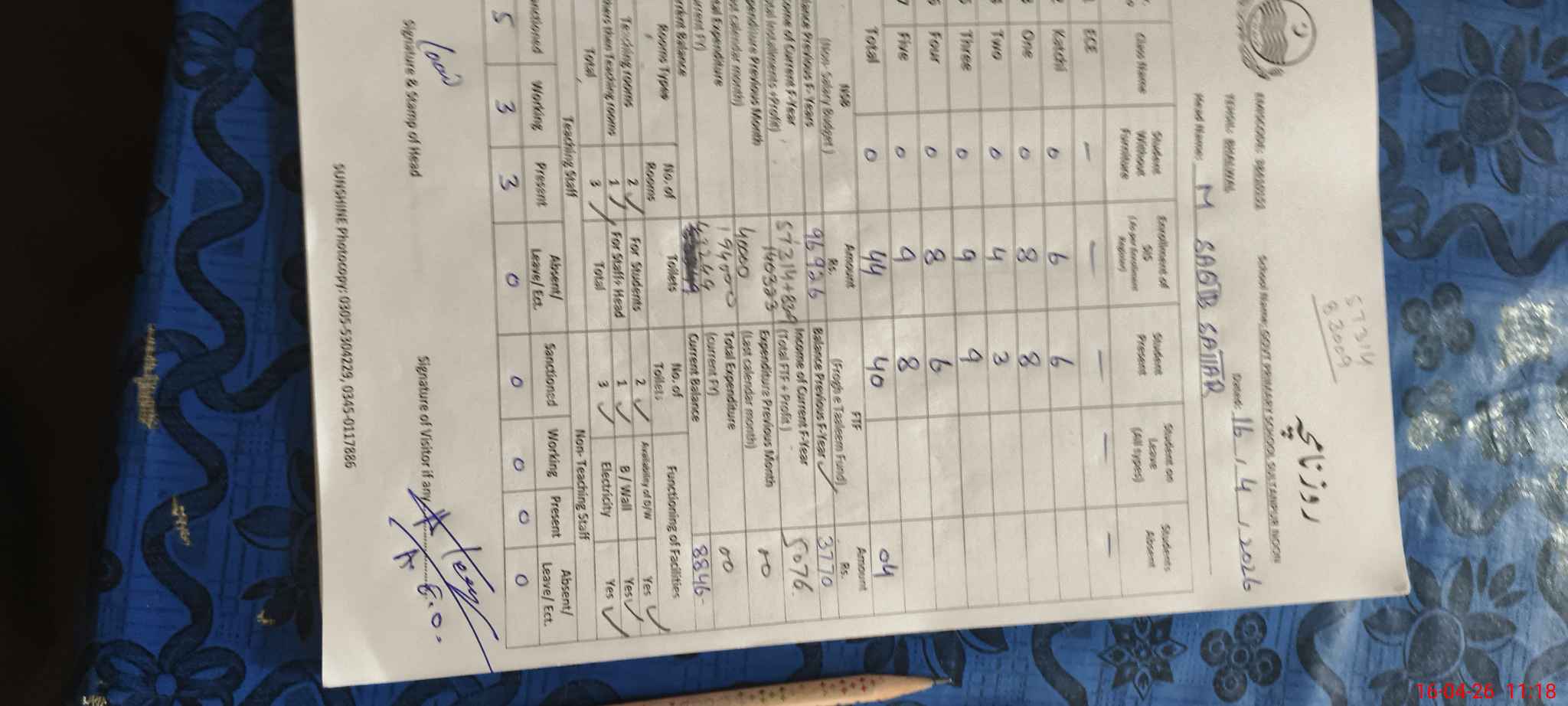 | Name: Mu**** Sa**** Sa**** Designation: (School Headmaster's/Headmistress's) PST Phone/Cell Number: 03**** |