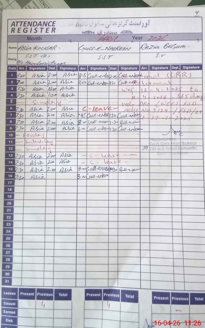 | 33**** | Sa**** Na**** | PST Science/Maths | Regular | 0 | 0 | 0 | 0 | 0 | 0 | 0 | 0 | 0 | Casual |
