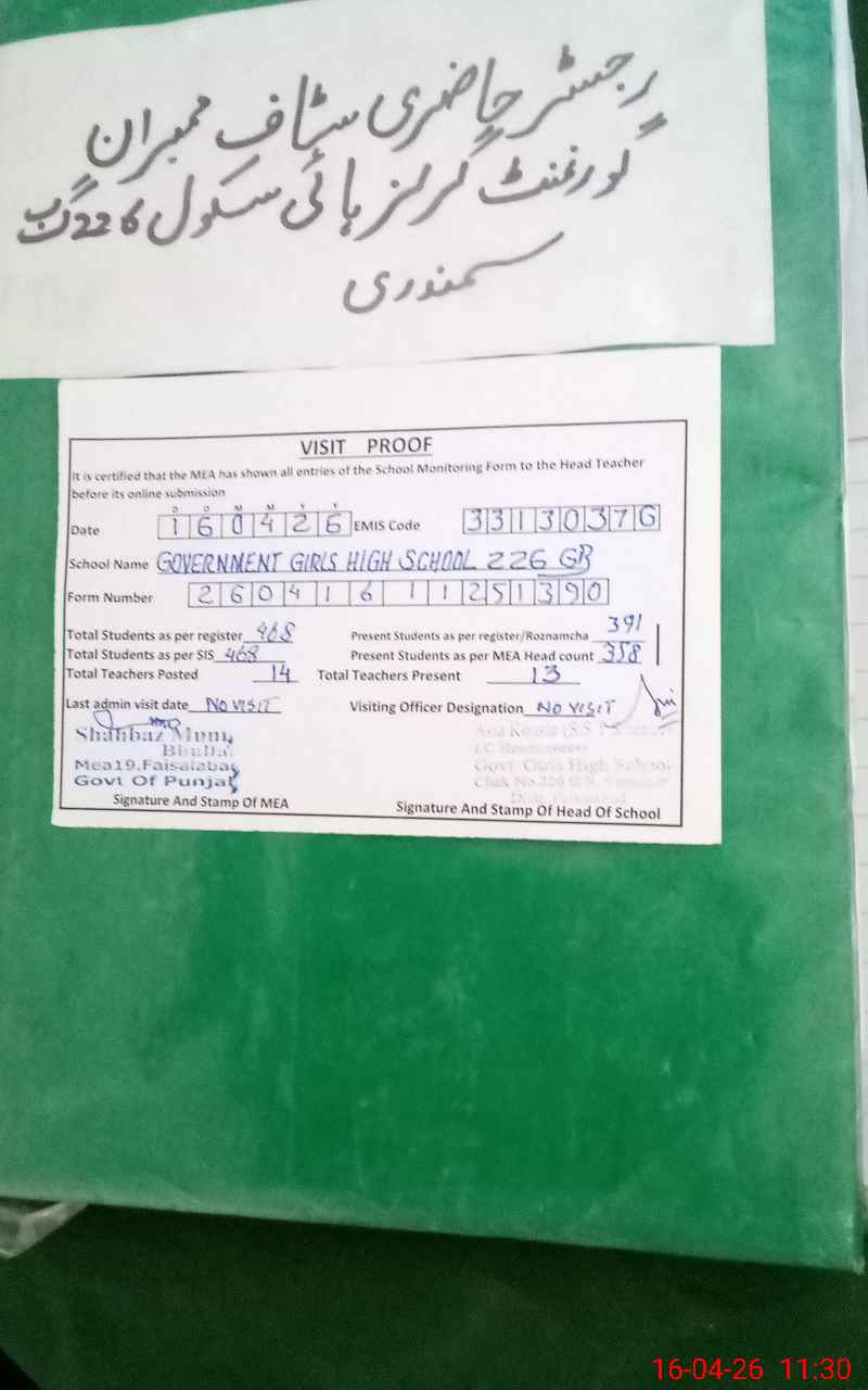 | EMIS Code: 33130376 | Name of School: GGHS CHAK NO 226 GB | |||