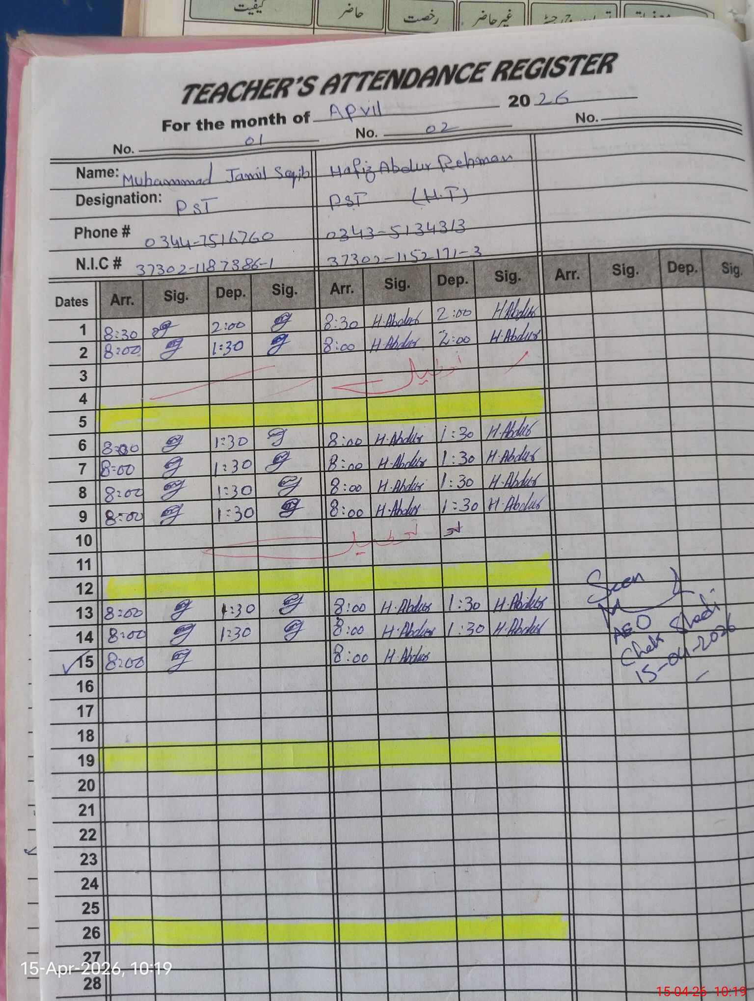 | Name: HA**** AB**** R,**** Designation: (School Headmaster's/Headmistress's) Headmaster Phone/Cell Number: 03**** |