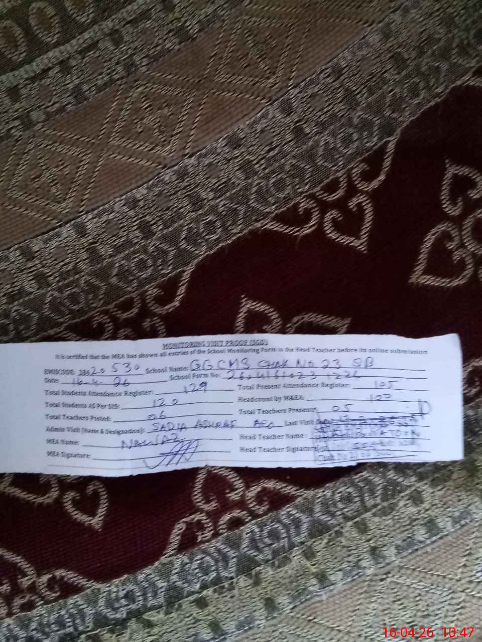| EMIS Code: 38420530 | Name of School: GGCMS CHAK NO.23 SB SGD | |||