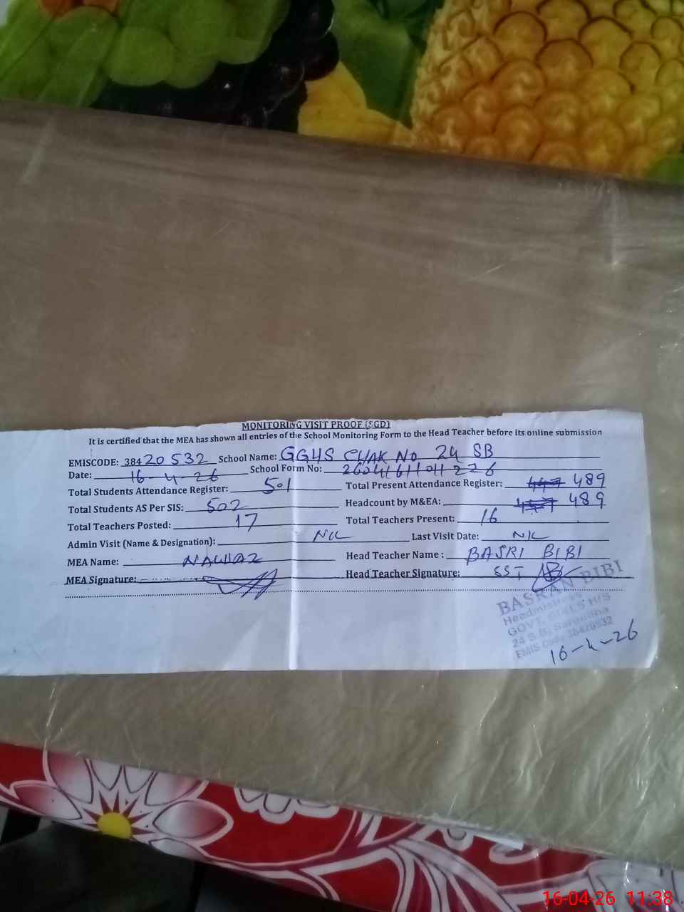 | EMIS Code: 38420532 | Name of School: GGHS CHAK NO.24 SB SGD | |||