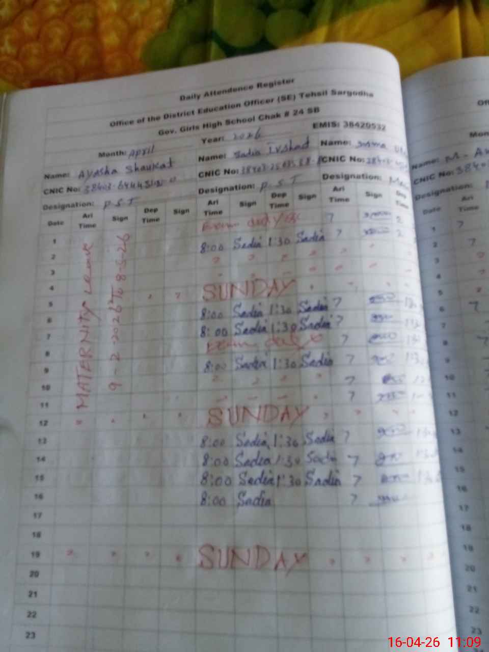 | 38**** | Ay**** Sh**** | PST Science/Maths | Regular | 31 | 0 | 0 | 31 | 0 | 0 | 0 | 0 | 0 | Maternity |
