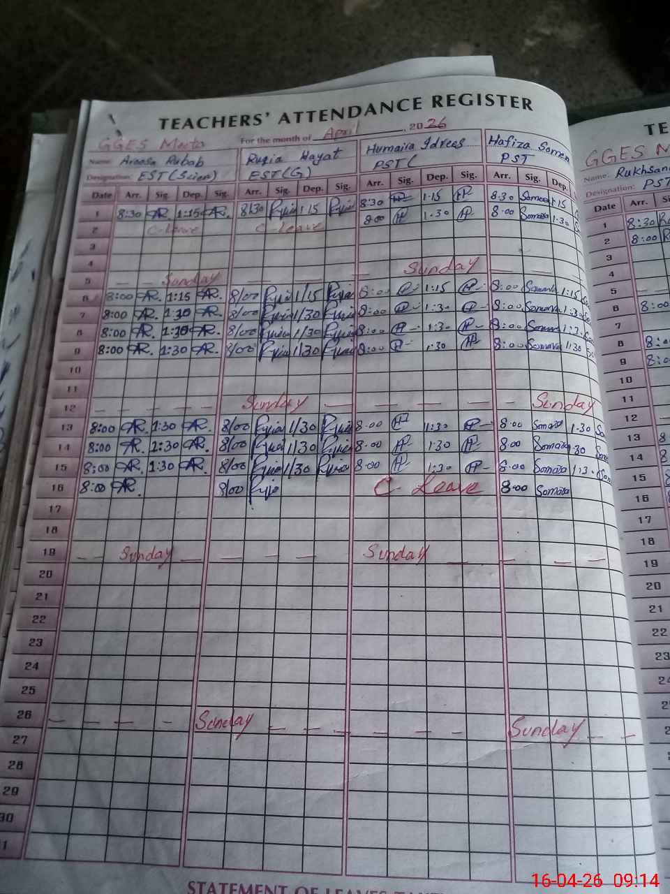 | Name: NA**** FA**** Designation: (School Headmaster's/Headmistress's) SST SCIENCE Phone/Cell Number: 03**** |