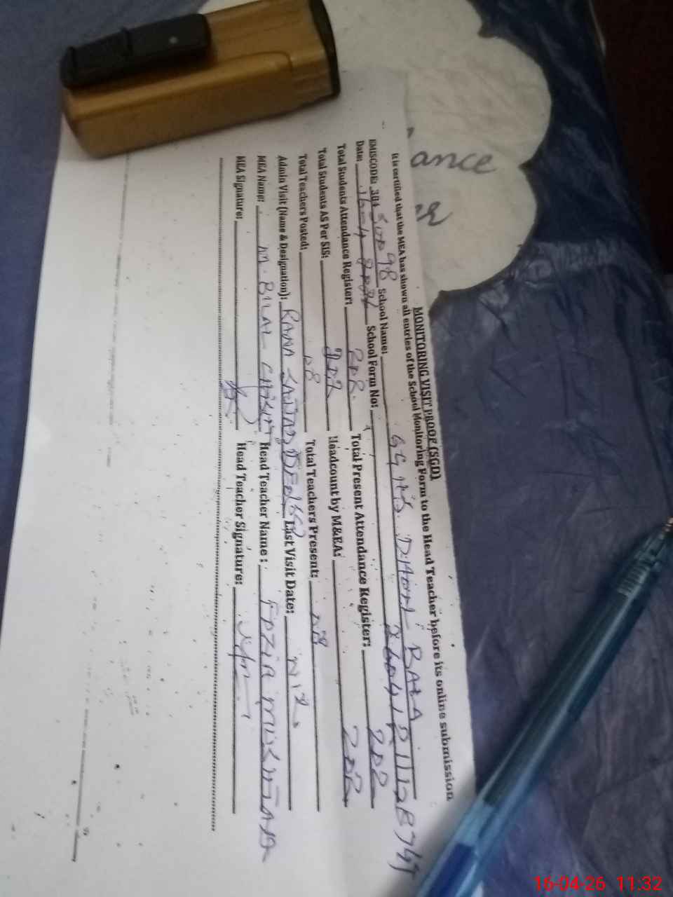 | Name: FO**** MU**** Designation: (School Headmaster's/Headmistress's) SST Phone/Cell Number: 03**** |