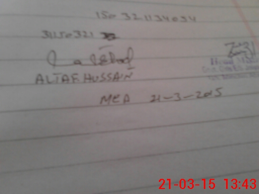 | Monitoring Date: 21-03-2015 | Start Time: 21-03-2015 01:07 PM | End Time: 21-03-2015 01:44 PM | Name of MEA: Al**** Hu**** BN**** | |