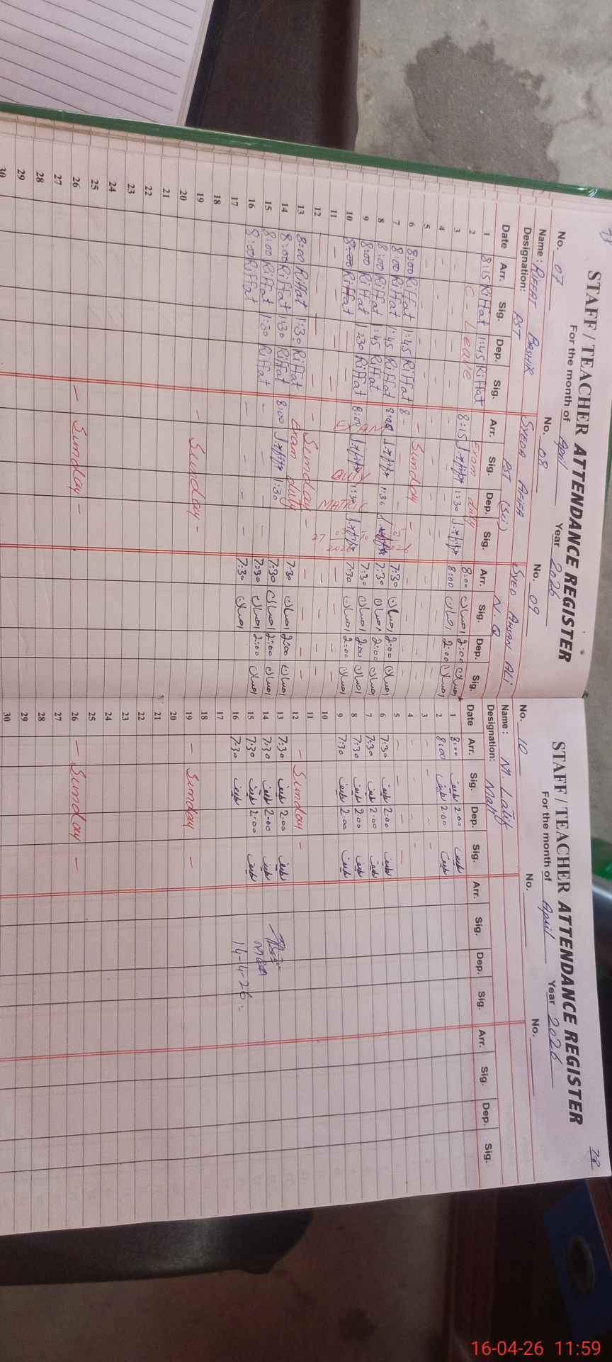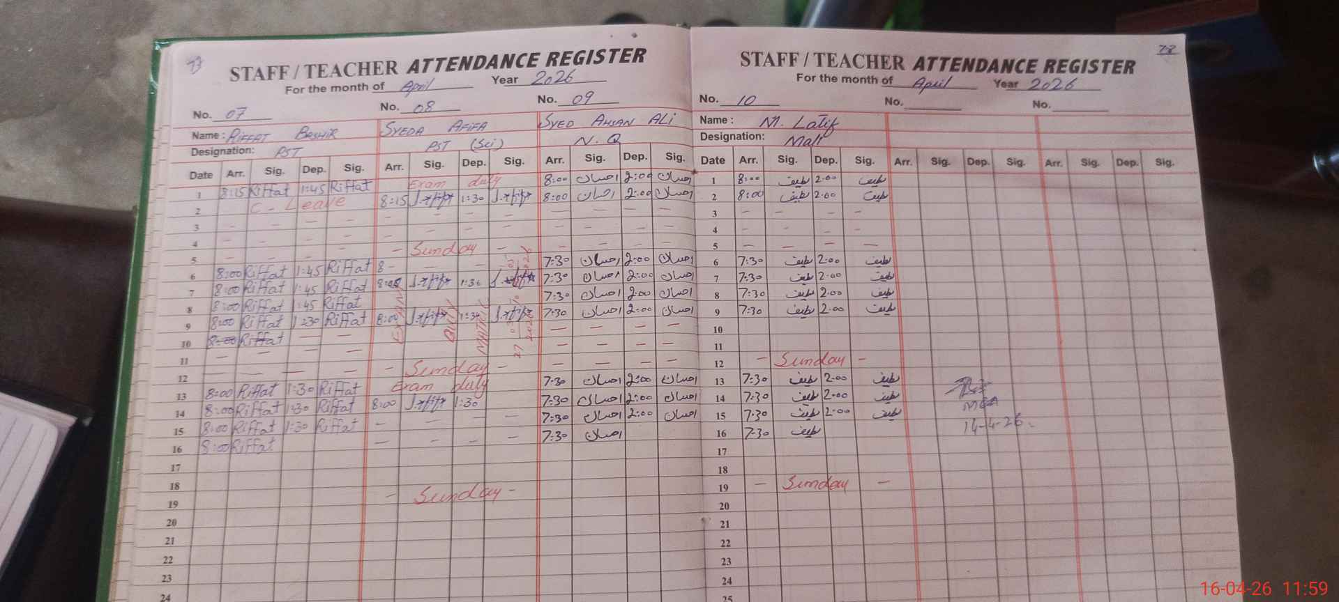 | CNIC | Full Name | Designation | R/C | Absence During Last Calender Month |